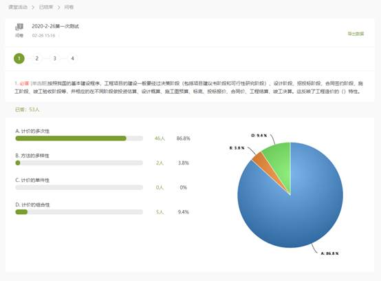 任志涛老师的《工程定额原理》课程,以“学习通+腾讯会议+微信群”的方式进行授课。课前一周建立课程微信群,将课程学习资料发放给同学,将网上平台使用进行演练。使用学习通进行签到和作业互动,及时掌握学生学习动态。教学过程中学生们积极提问并及时反馈。